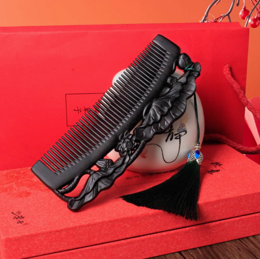 Luxury Black Sandalwood Comb: Elegant Double-sided Carved Fine Wooden Comb