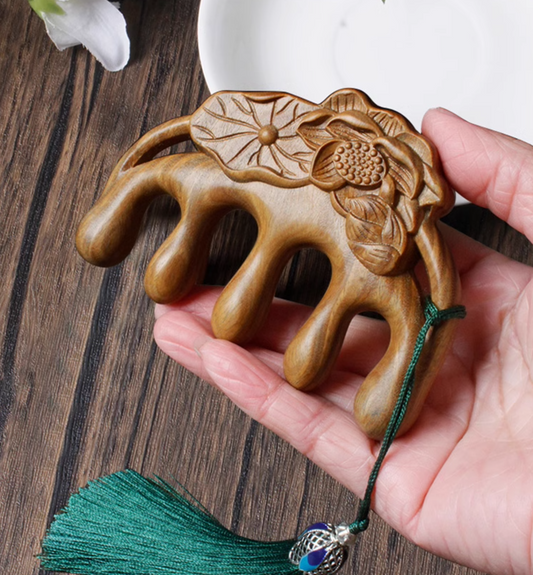 Multi-Functional Sandalwood Gua Sha Comb: Head and Face Massage & Acupoint Scraping